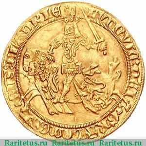 Удивительно, но изначальный, самый-самый первый франк был памятной монетой. Закончились четыре года заточения в английском плену короля Иоанна Доброго. И вот он на родине, а по случаю его возвращения в 1360 году отчеканена золотая монета, которую назвали ‘вольный’ или ‘свободный’. Именно так слово ‘франк’ можно перевести с французского. Так как государь представлен верхом, то монету впоследствии стали именовать ‘конный франк’. Это случилось потому, что Карл V, взойдя на престол, принялся наряду с ‘конным франком’ чеканить и ‘пеший франк’. Надо сказать, что второй шаг ‘эволюции’ незначительно уменьшил вес новой монеты. Золотые франки продолжали выпускаться целый век, когда во времена Людовика XI, не сменились экю — монетой, тоже чеканившейся из золота.