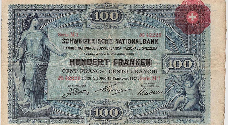 Начиная с первой серии (1907), Национальный банк Швейцарии выпускает банкноту 1000 франков. При этом речь всегда шла о банкноте исключительно высокой стоимости. Так, в 1907 году 1000-франковая банкнота без учета подорожания в пересчете на сегодняшний день стоила 12.500 франков.